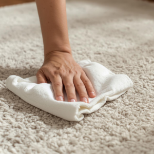 Blotting the stain gently with a clean cloth and using a mild cleaning solution is usually the safest approach. Avoid scrubbing aggressively, as this can damage carpet fibers.